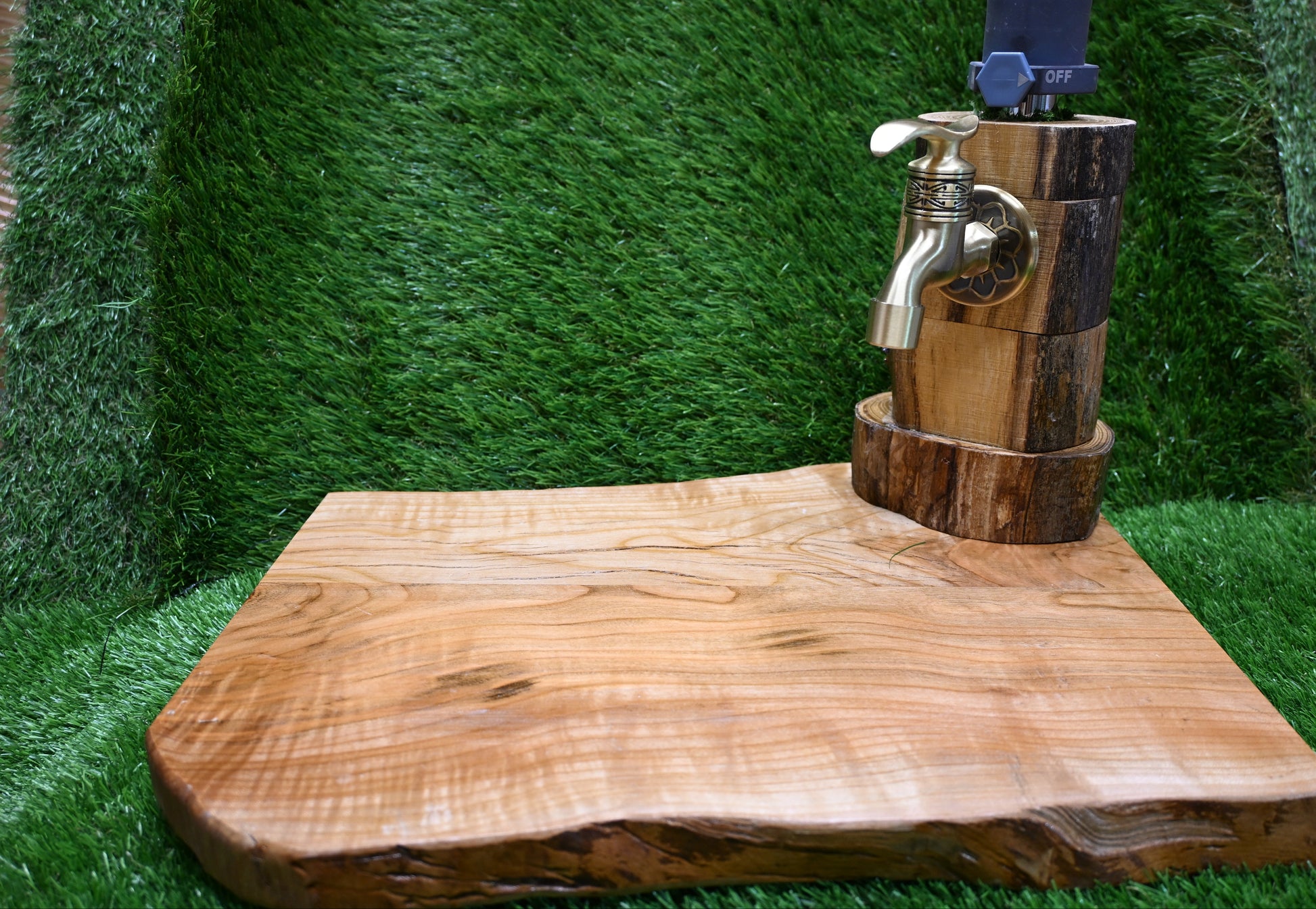 This handcrafted alcohol dispenser is a true statement piece, combining the natural beauty of Yew and Acacia wood with functional design. The rich tones and organic grain patterns of the wood create a rustic yet refined look, making it a perfect centerpiece for any home bar or kitchen.