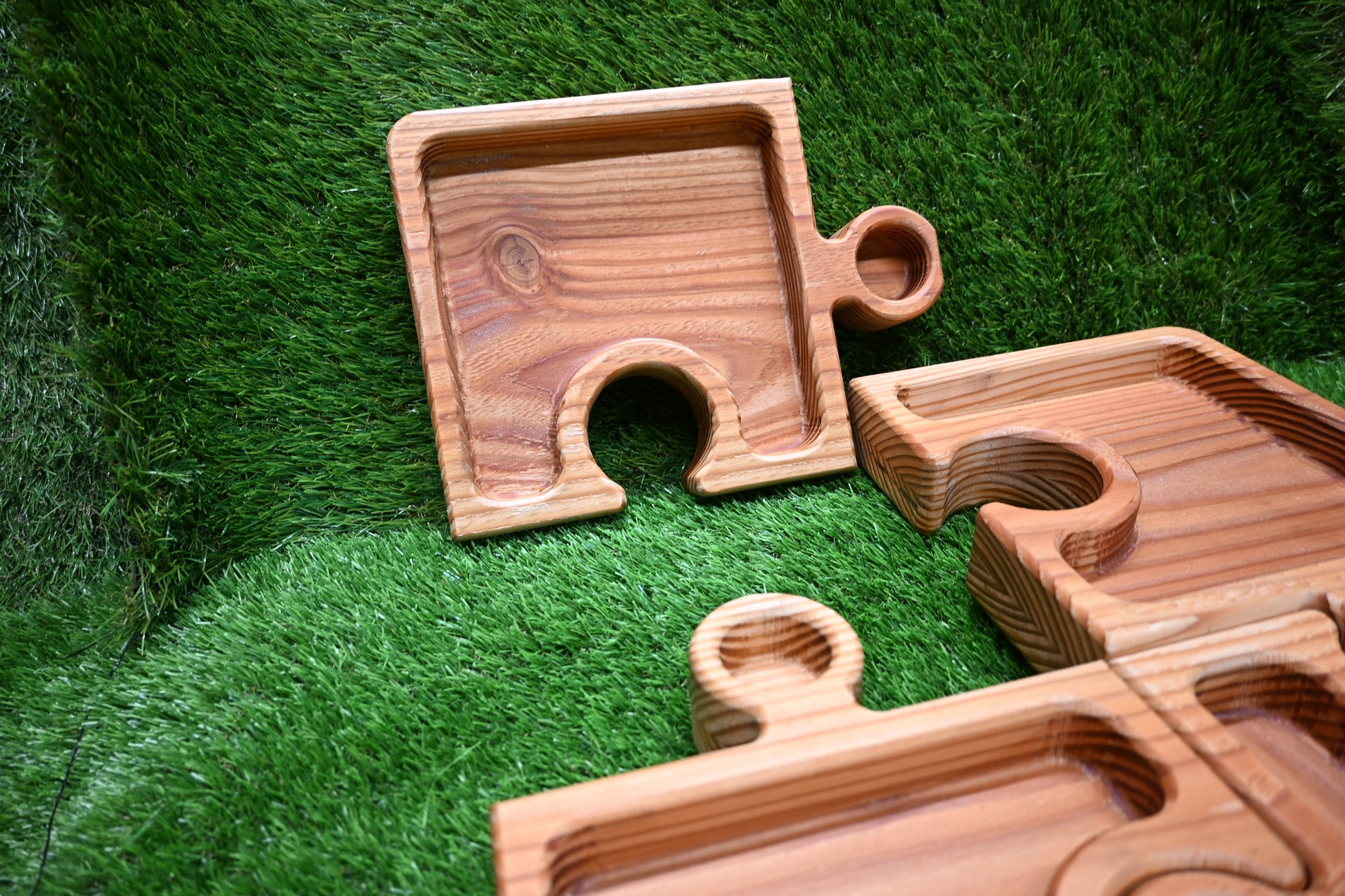 A creative twist on traditional serving ware, this puzzle tray is made from solid Pine wood, known for its warm tones and distinct natural grain. Designed as four interlocking pieces, each section can be used individually or combined to form a complete tray — offering both style and versatility.