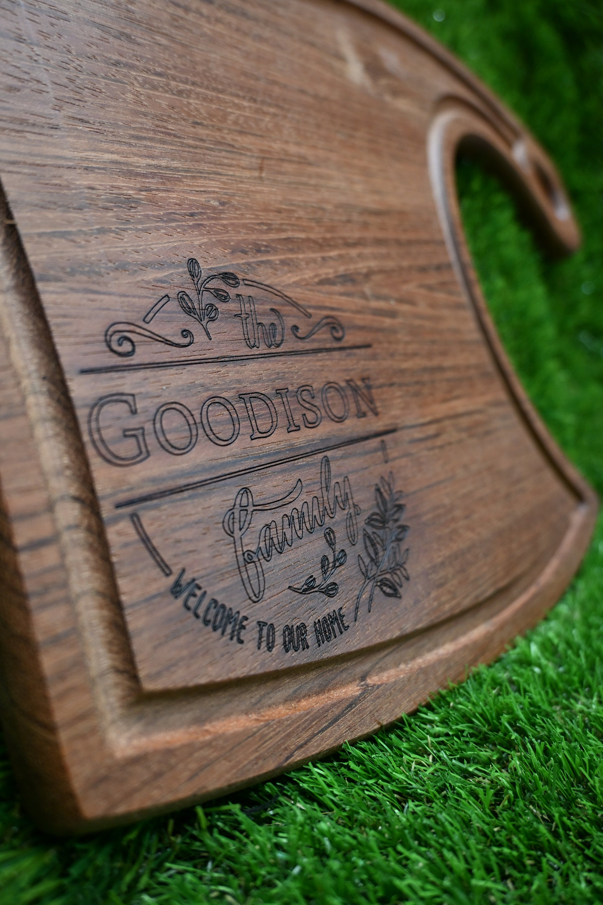 This elegant cutting board is made from premium Jatoba wood, a hardwood admired for its deep reddish hue, smooth texture, and lasting strength. The unique handle design and fine engraving highlight the attention to detail that defines each individually made piece.