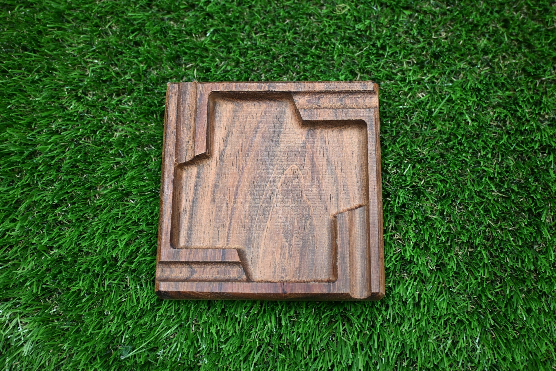 This wooden ashtray is carved from premium walnut, known for its rich grain patterns, natural durability, and elegant brown tones. The design features carefully carved grooves for resting cigarettes or cigars, all smoothly integrated into a compact, stylish square form.
