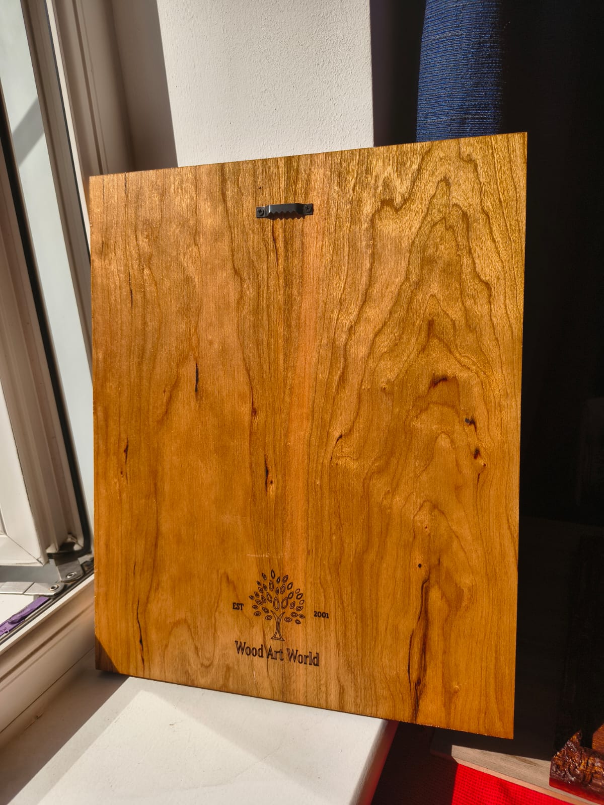 The icon is finished with a premium clear wood lacquer, which enhances the natural grain, adds shine, and ensures long-lasting protection.